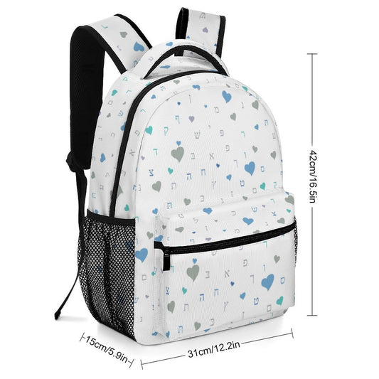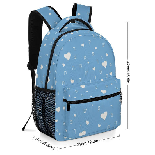 Pretty in Sky Blue Aleph Beis Hearts Children's Backpack
