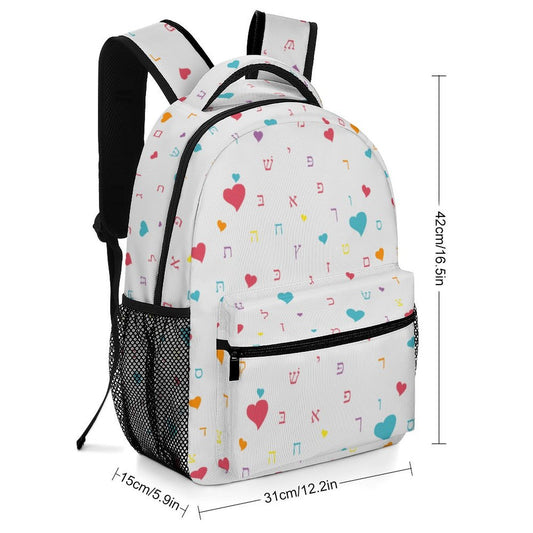 Summer Fun White Aleph Beis Hearts Children's Backpack