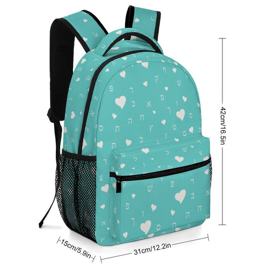 Pretty in Aqua Aleph Beis Hearts Children's Backpack