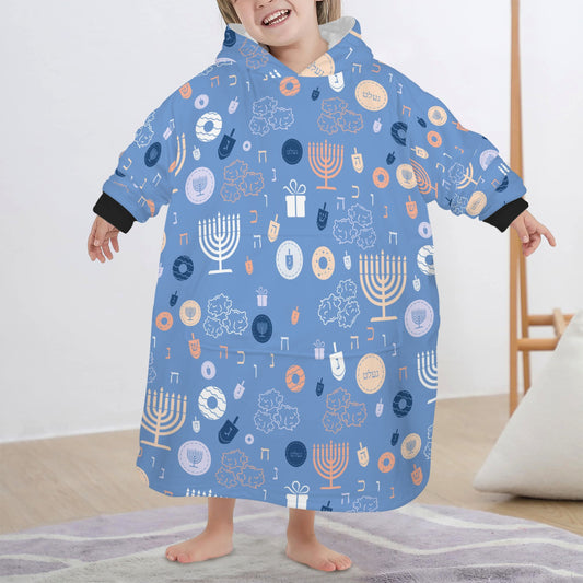 Blue Chanukah 5785 Blanket Hoodie for Little Kids (Model H67)