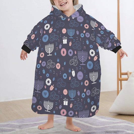 Blue Chanukah 5785 Blanket Hoodie for Little Kids (Model H67)