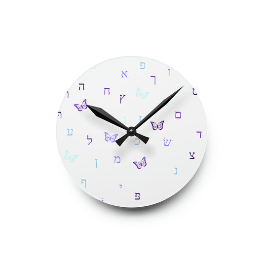 Purple Aleph Beis Butterflies Acrylic Wall Clock