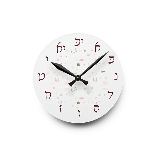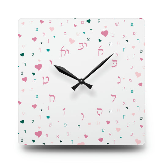 Pink Aleph Beis Hearts Acrylic Wall Clock