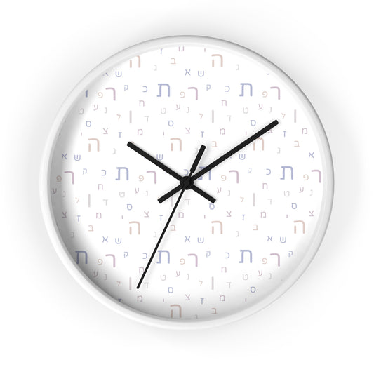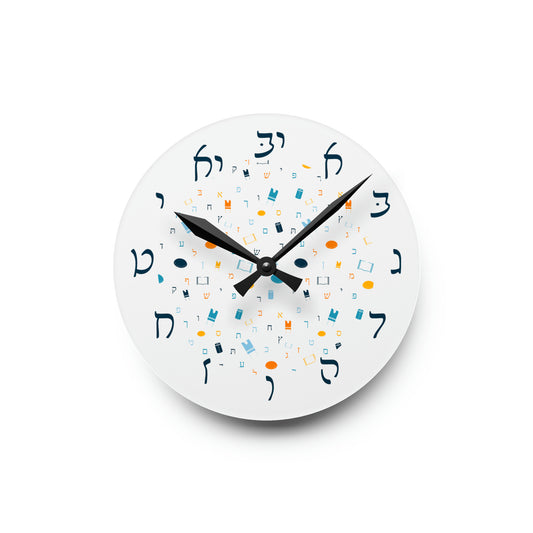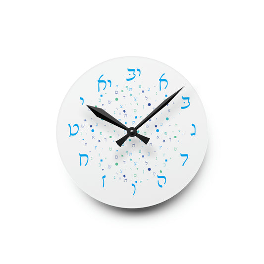 With Rashi Numbers - Light Blue Aleph Beis Shapes Acrylic Wall Clock