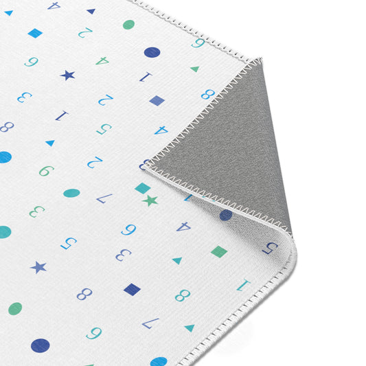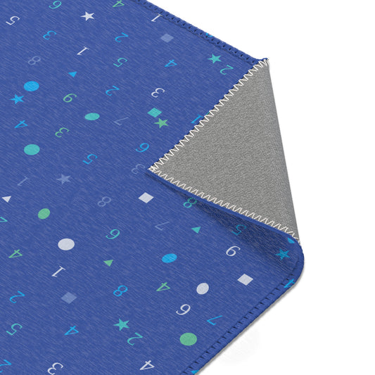 Dark Blue Numbers and Shapes Area Rugs