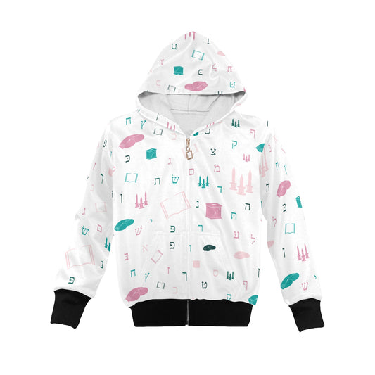 Mitzvah Girls in White Little Girls' Zip Up Hoodie (Model H58)