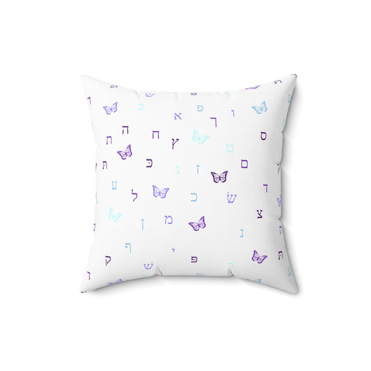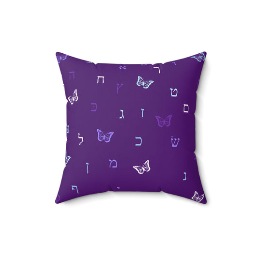 Purple Aleph Beis Butterflies Faux Suede Square Pillow