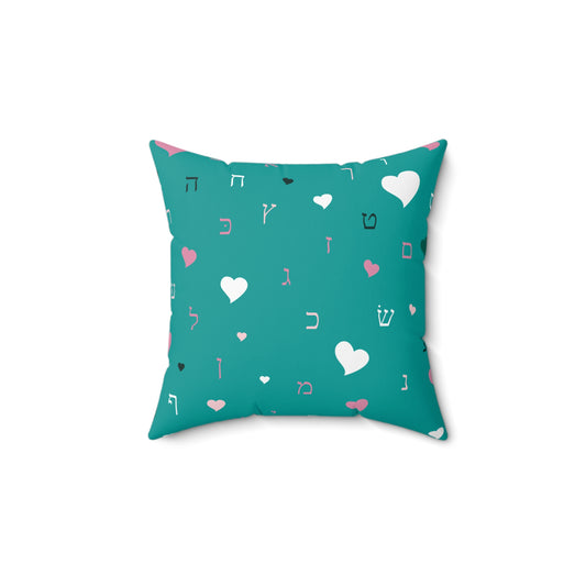 Green Hearts Aleph Beis - Faux Suede Square Pillow