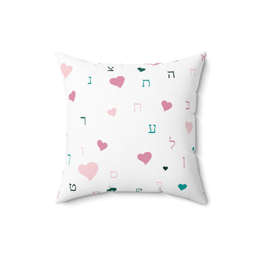 Pink Aleph Beis Hearts - Faux Suede Square Pillow