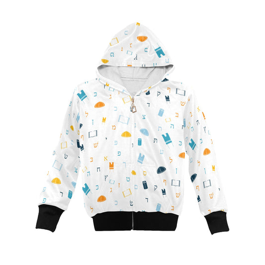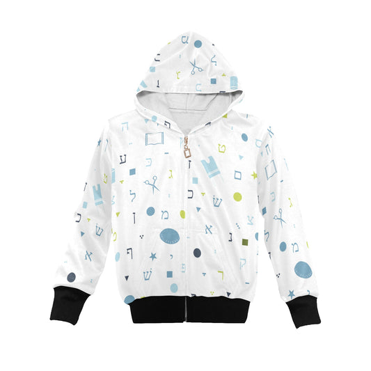 Blue Aleph Beis Shapes Little Boys' Zip Up Hoodie (Model H58)