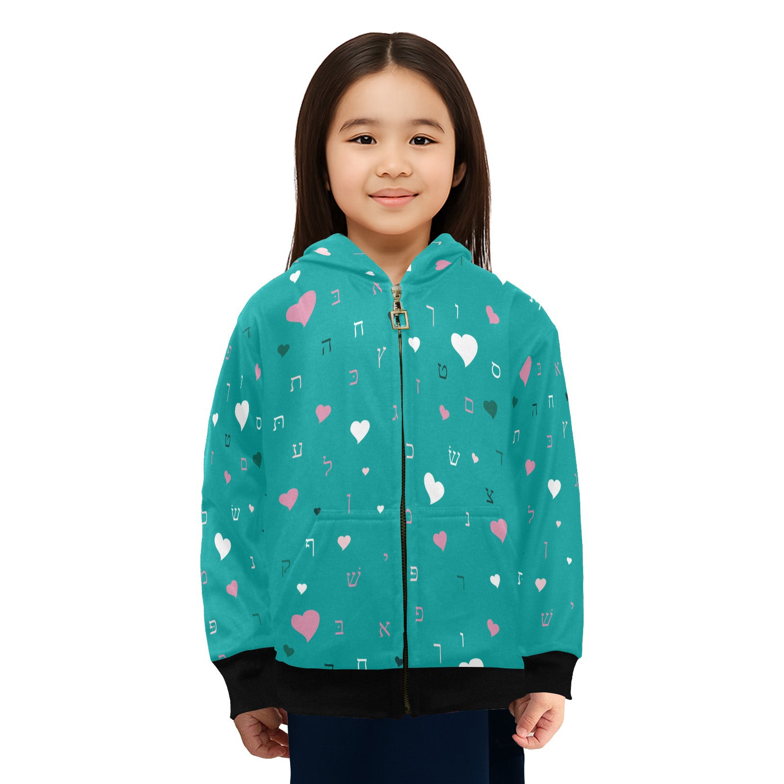 Ahava in Green Little Girls' Zip Up Hoodie (Model H58)