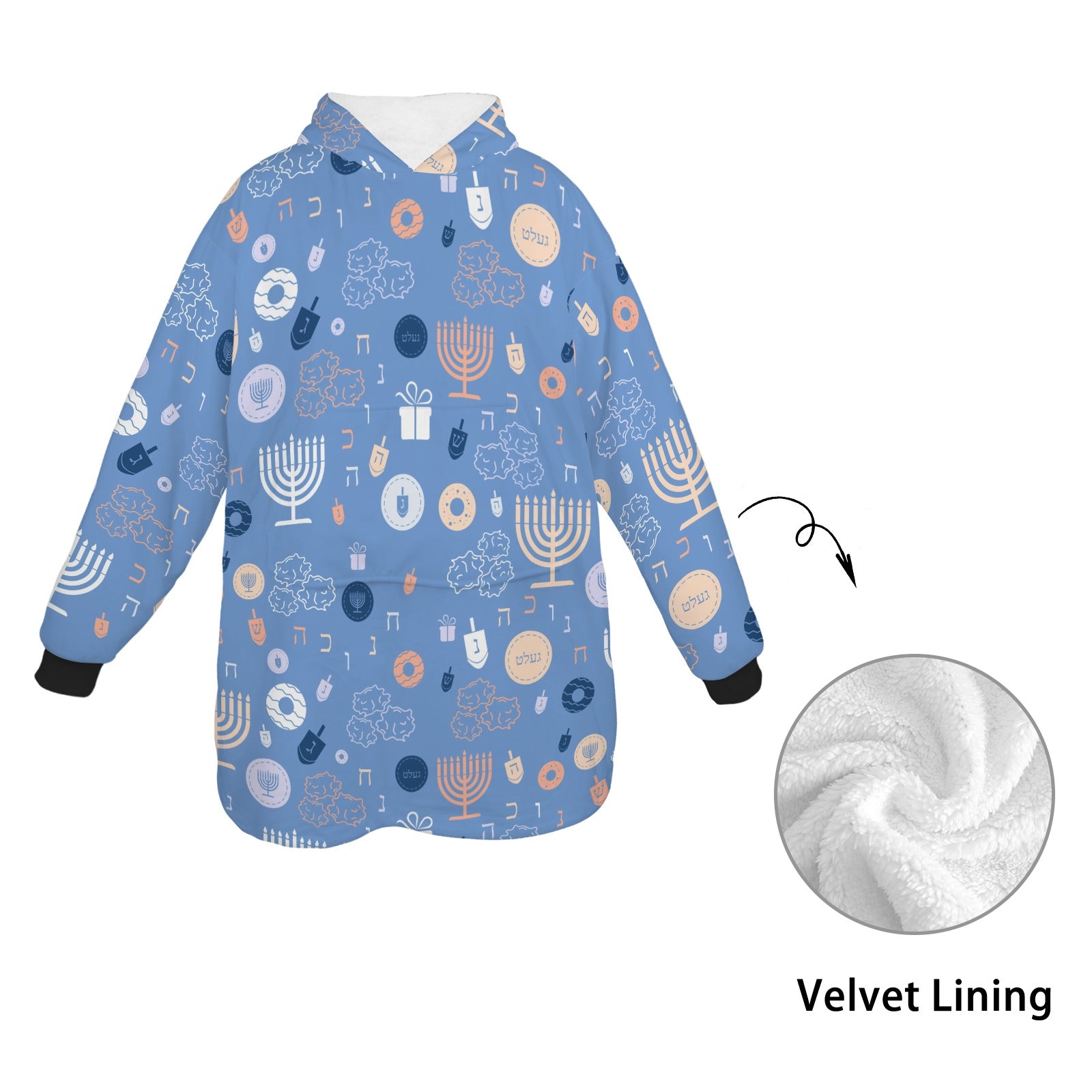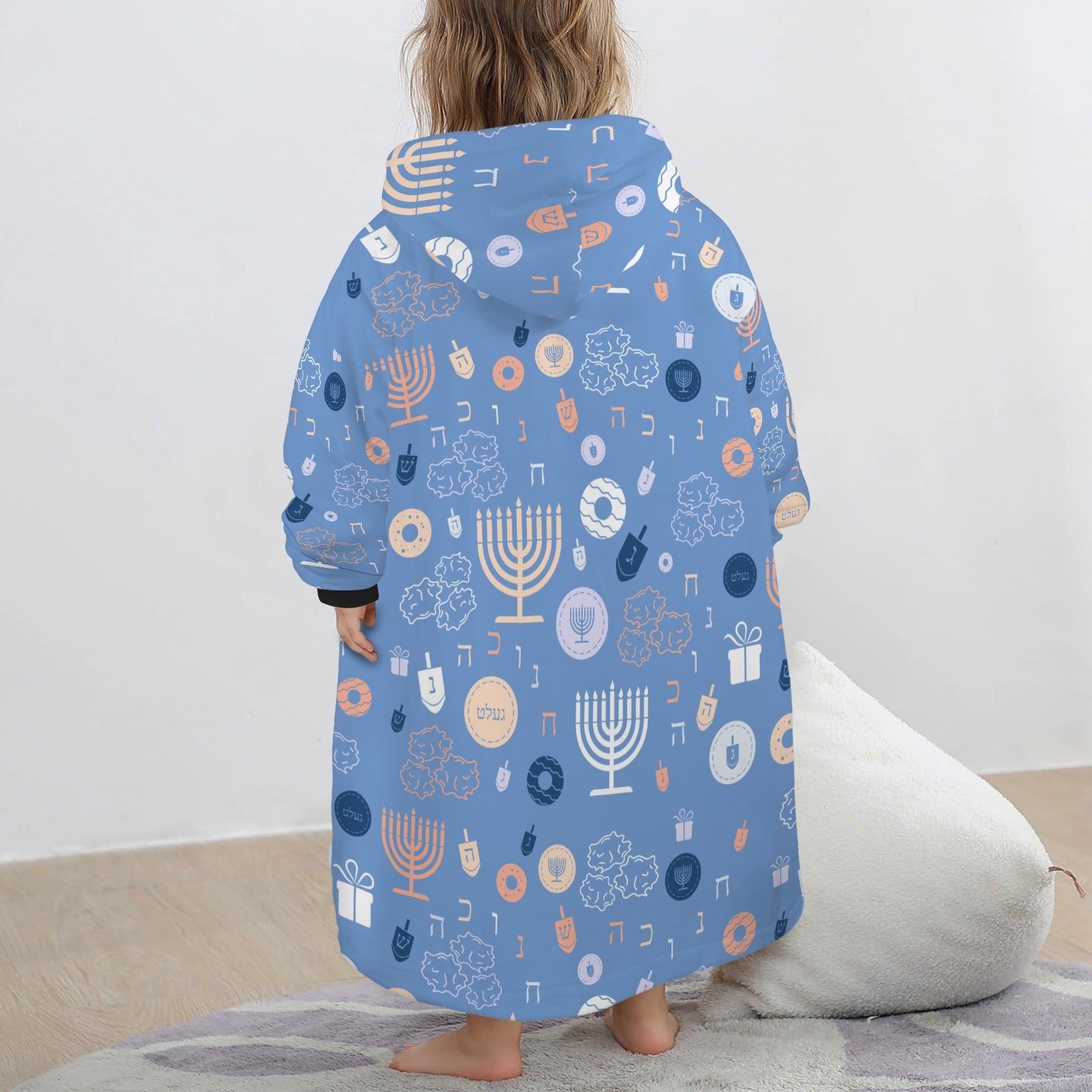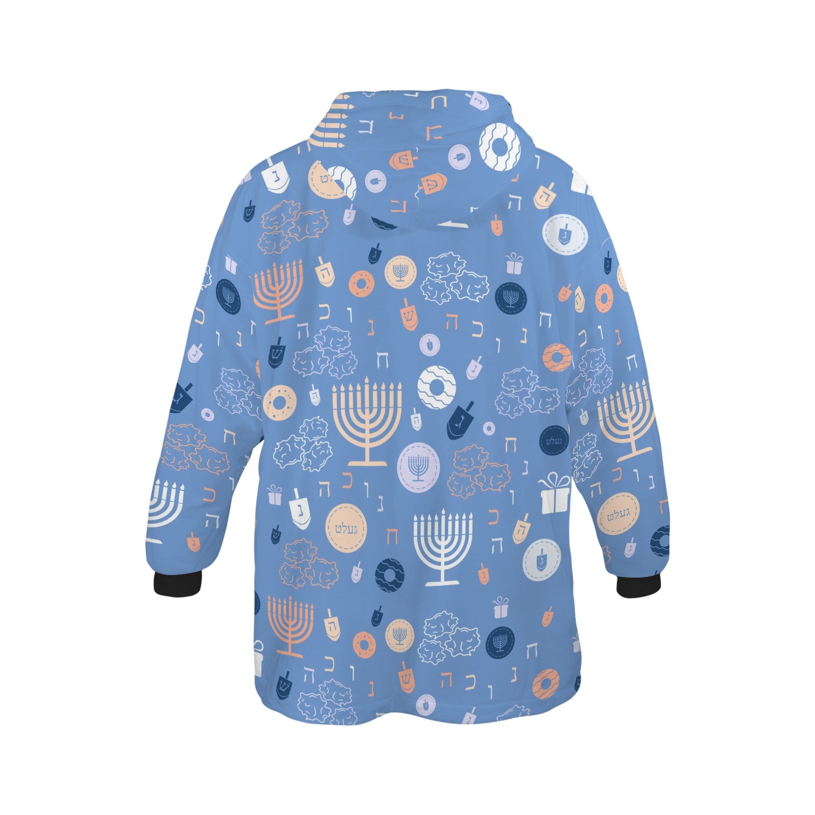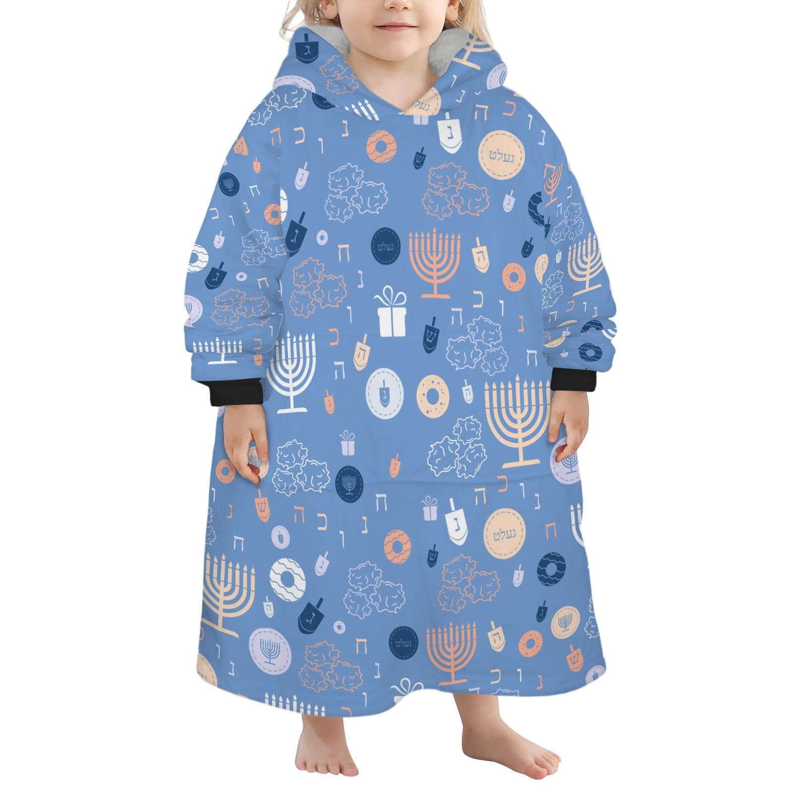 Blue Chanukah 5785 Blanket Hoodie for Little Kids (Model H67)