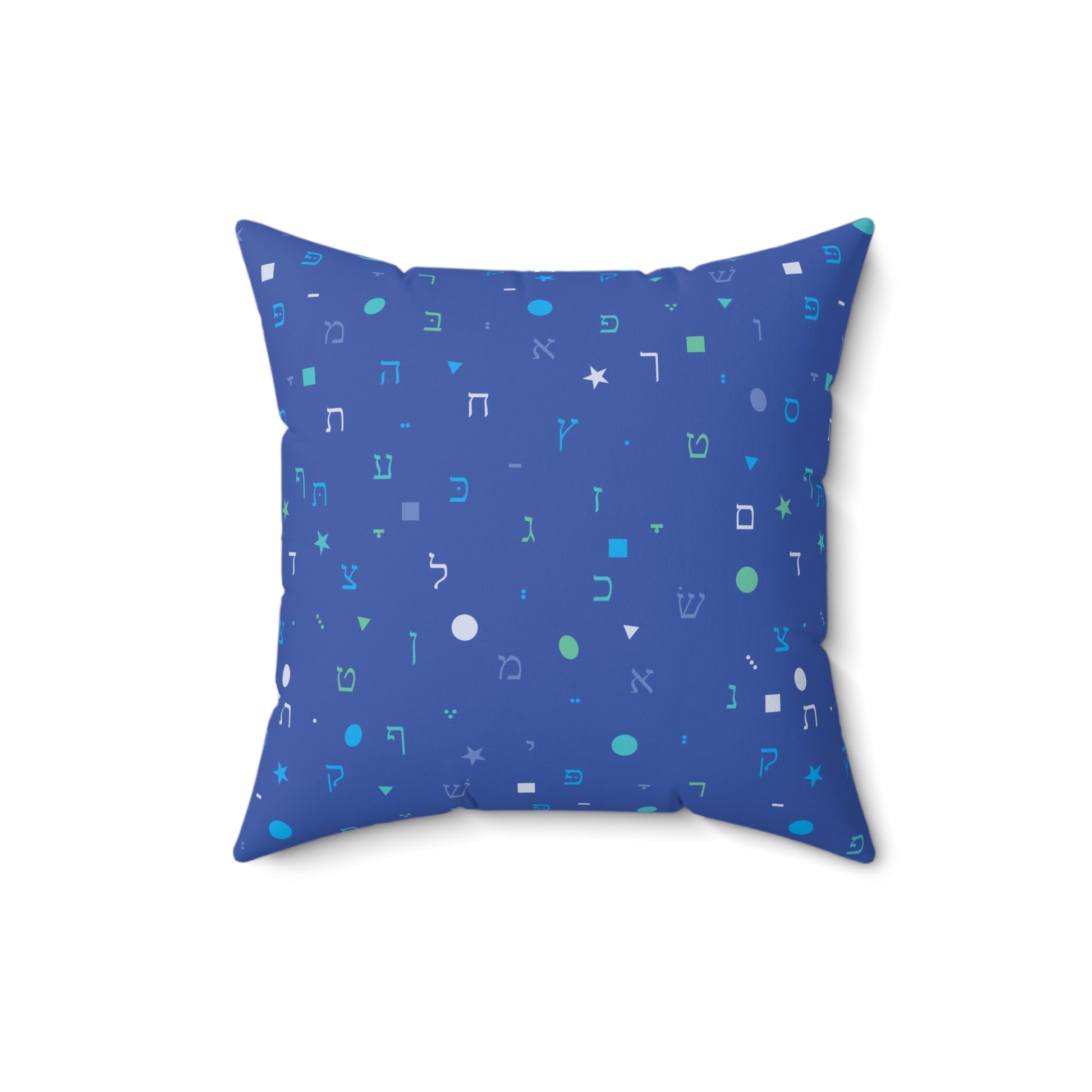 Dark Blue Aleph Beis and Shapes - Faux Suede Square Pillow