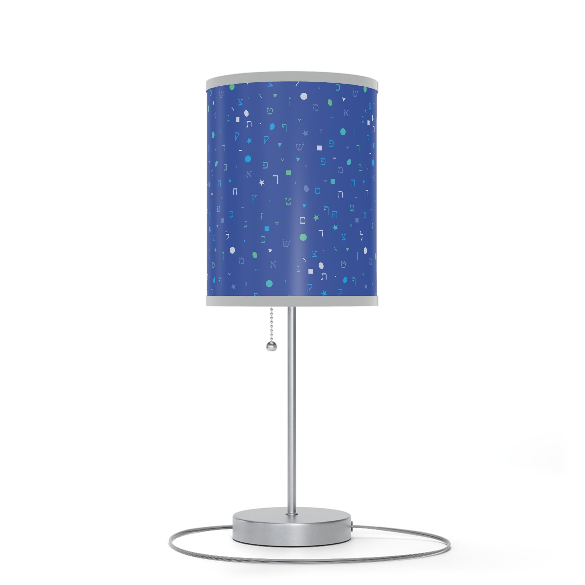 Dark Blue Aleph Beis with Shapes - Lamp on a Stand, US|CA plug