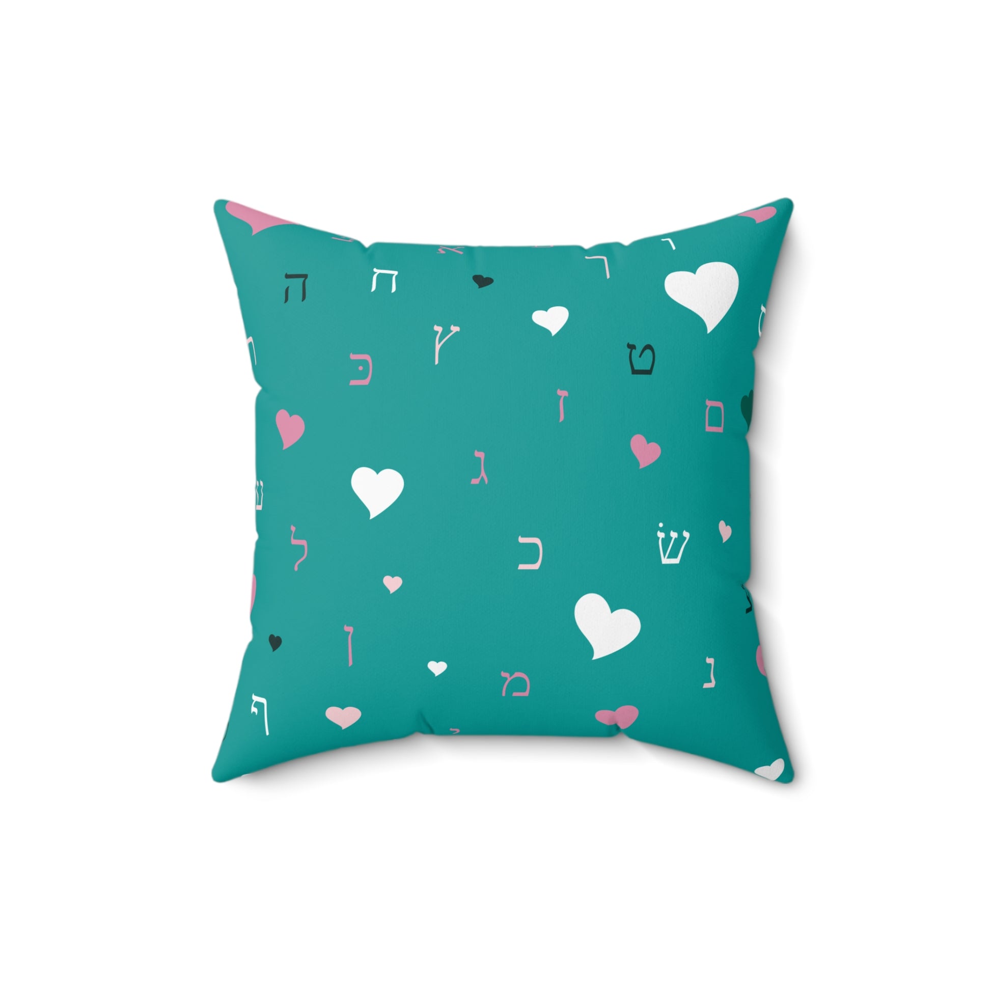 Green Hearts Aleph Beis - Faux Suede Square Pillow