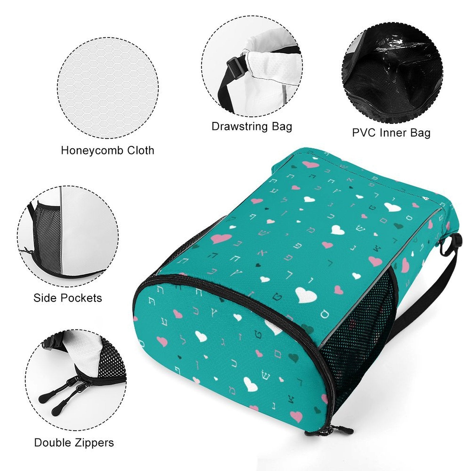 This Aleph Beis hearts design in fresh green surrounds your child with that message every single day. At camp, at school, on every trip — Torah travels with them.