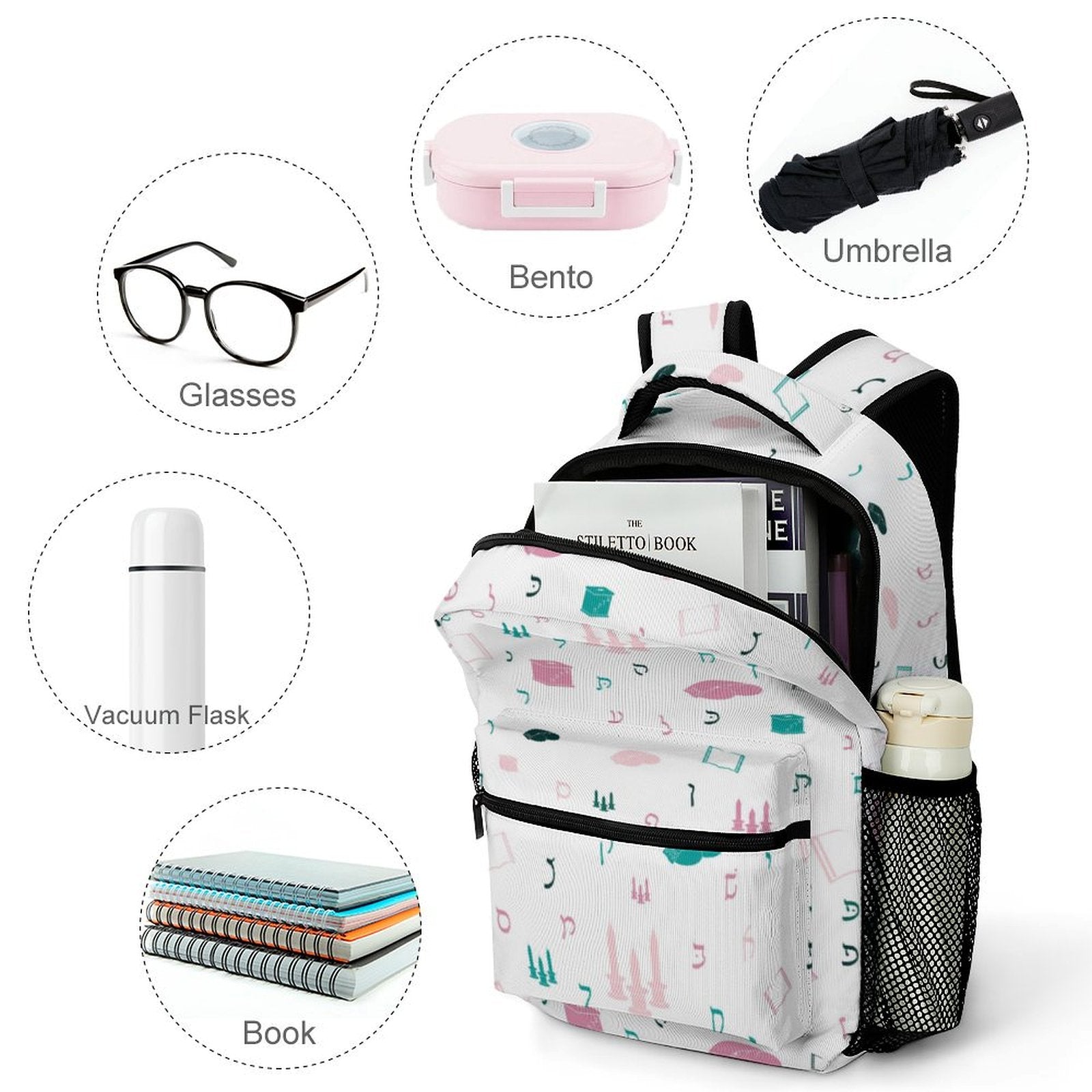 - Holds books, notebooks, and school supplies.