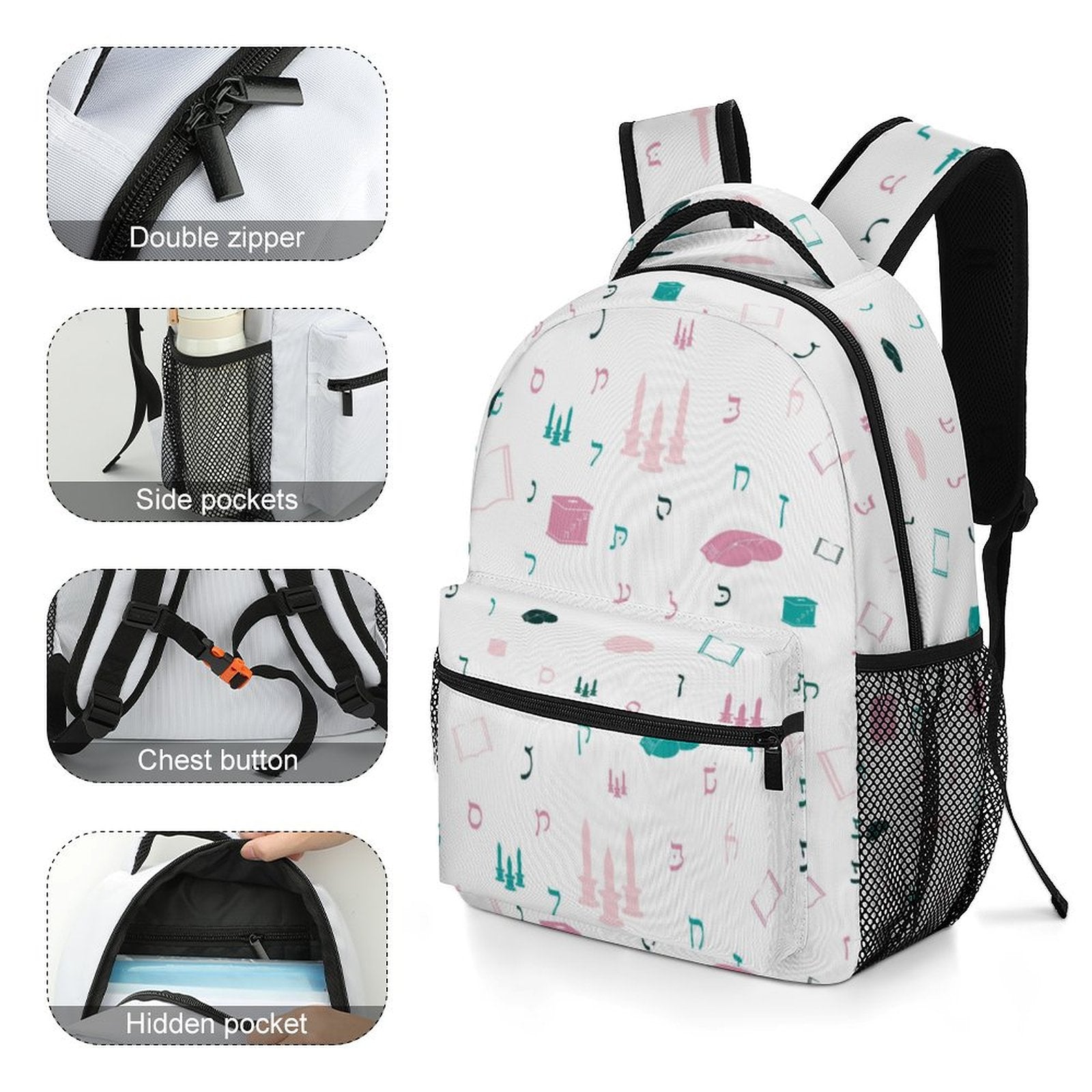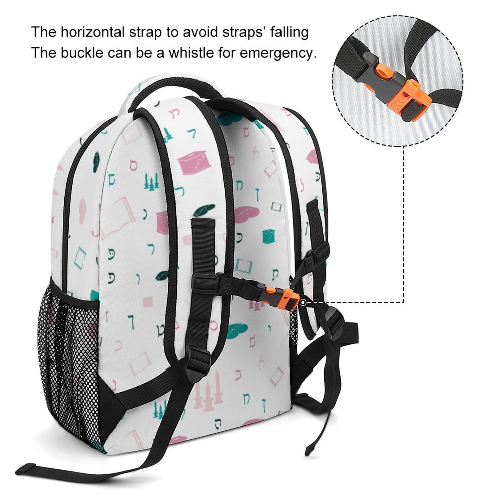 Crafted from durable and breathable Oxford cloth, this children's backpack weighs 17.57 oz and features vibrant all-over printing. It is ideal for carrying books, notebooks, folders, and other school essentials. The adjustable padded shoulder straps provide enhanced comfort, while mesh side pockets offer convenient storage for water bottles and umbrellas. For added safety, a small whistle is attached to the back, allowing your child to signal in emergencies. Cleaning is simple with hand washing or wiping using a damp cloth.