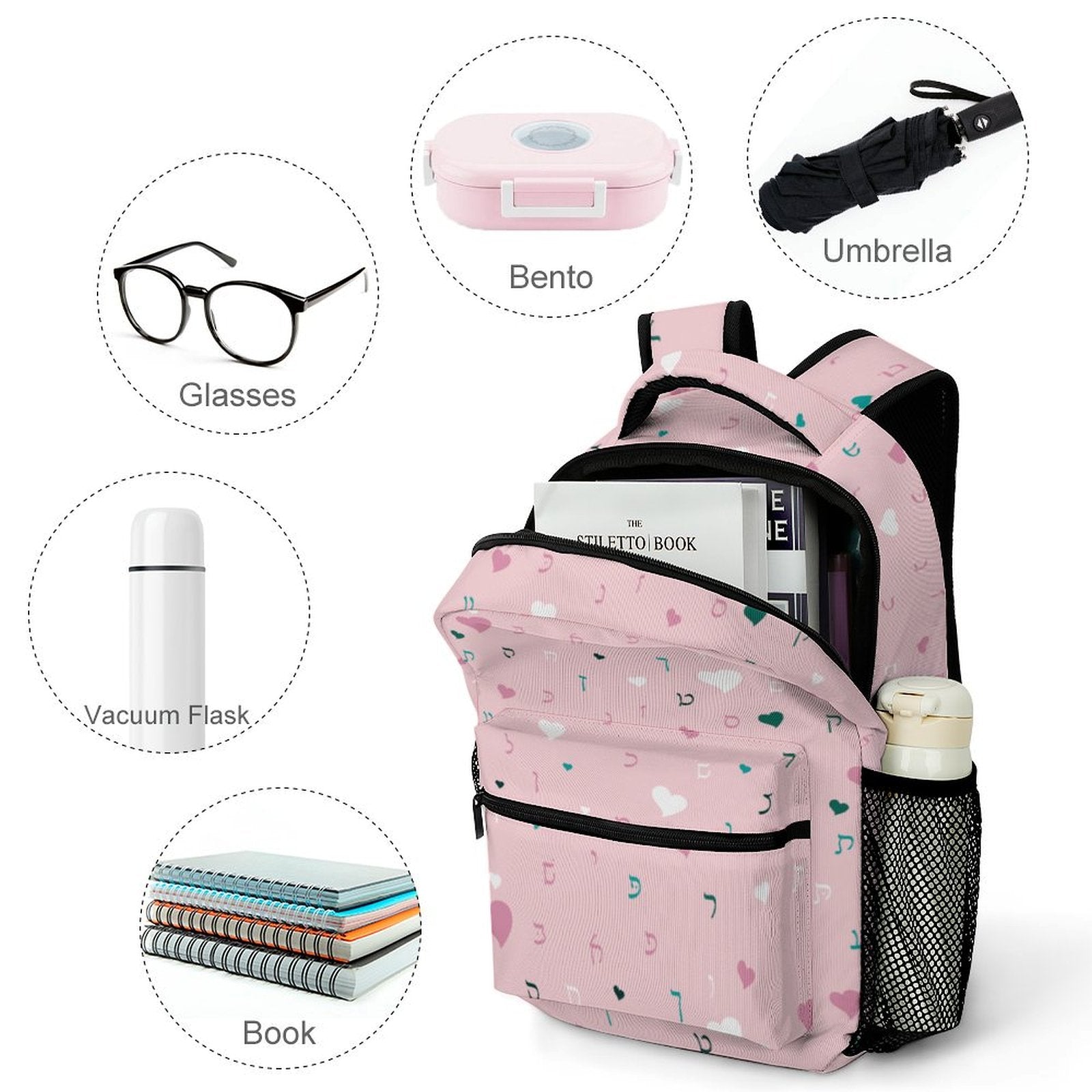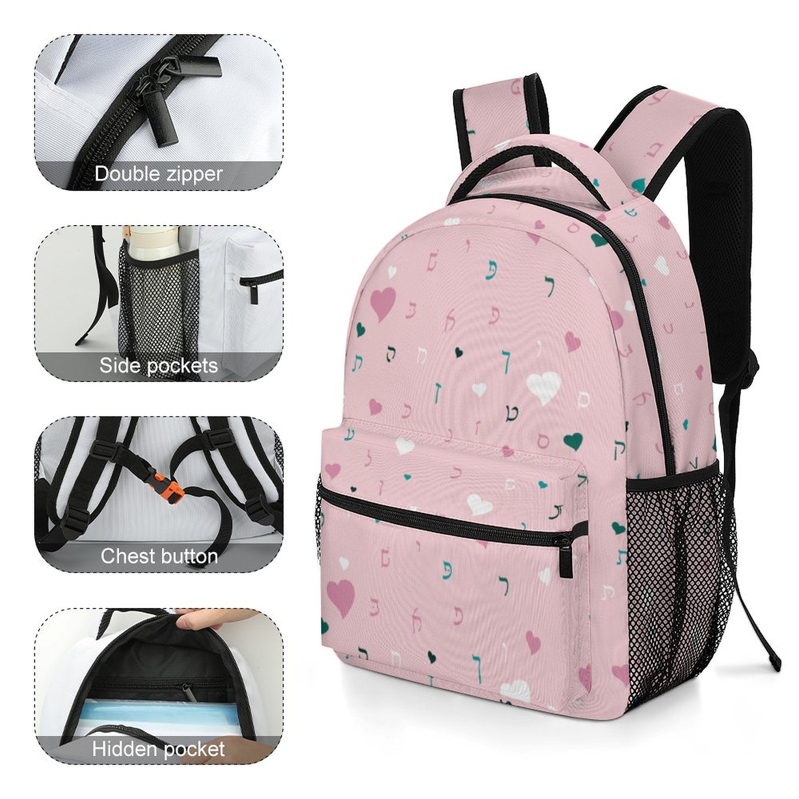 Pink Hearts Rashi Letters Children's Backpack