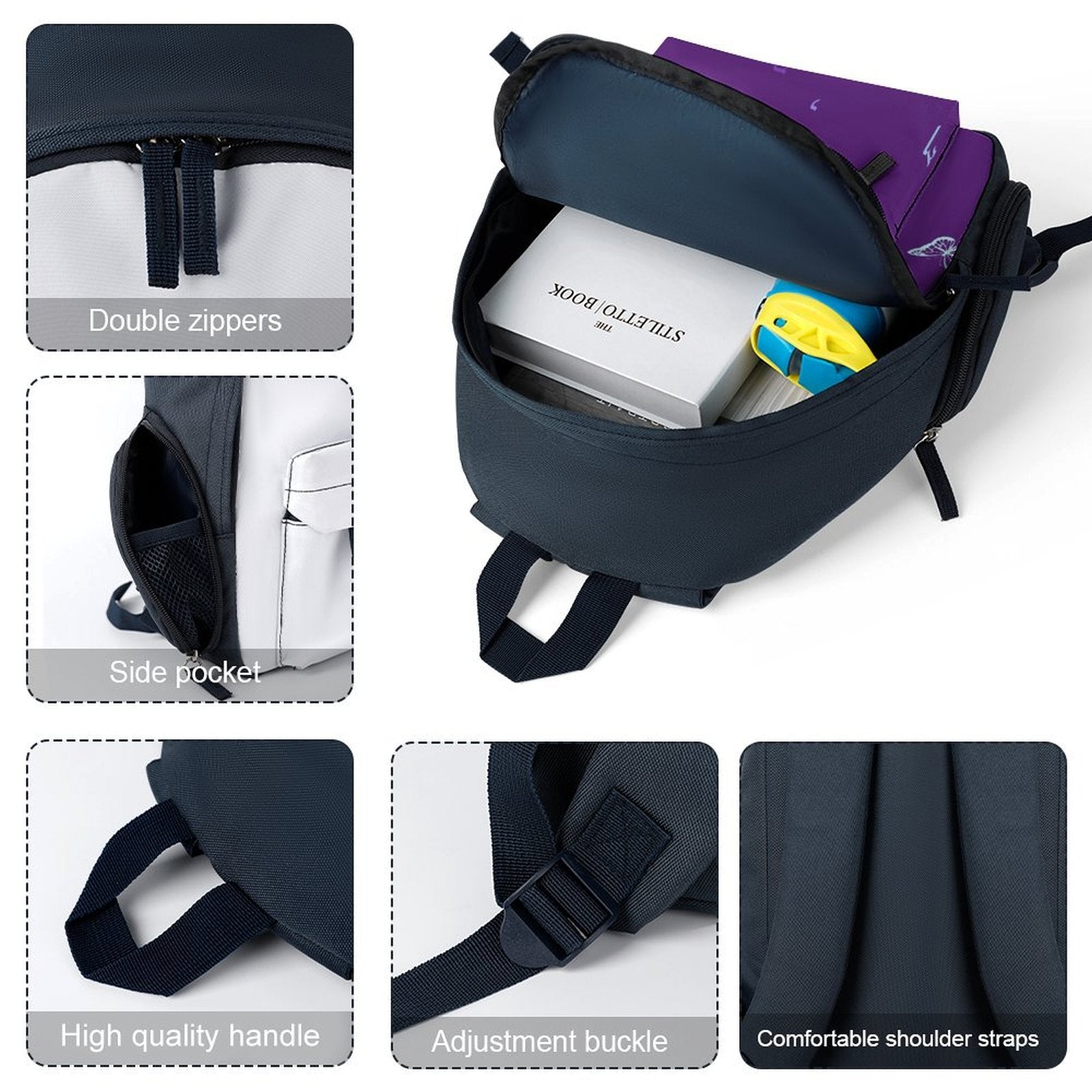 Crafted from premium polyester, this lightweight 8.68 oz schoolbag offers durability and strength for everyday use. Its spacious interior accommodates books, notebooks, folders, and binders with ease. The front compartment features a double-zipper closure, while the side pockets also zip securely, showcasing a distinctive design. Soft, cushioned shoulder straps ensure comfort and protect young shoulders. Ideal for school, travel, spring outings, and vacations, this bag is easy to maintain with simple cold water cleaning.