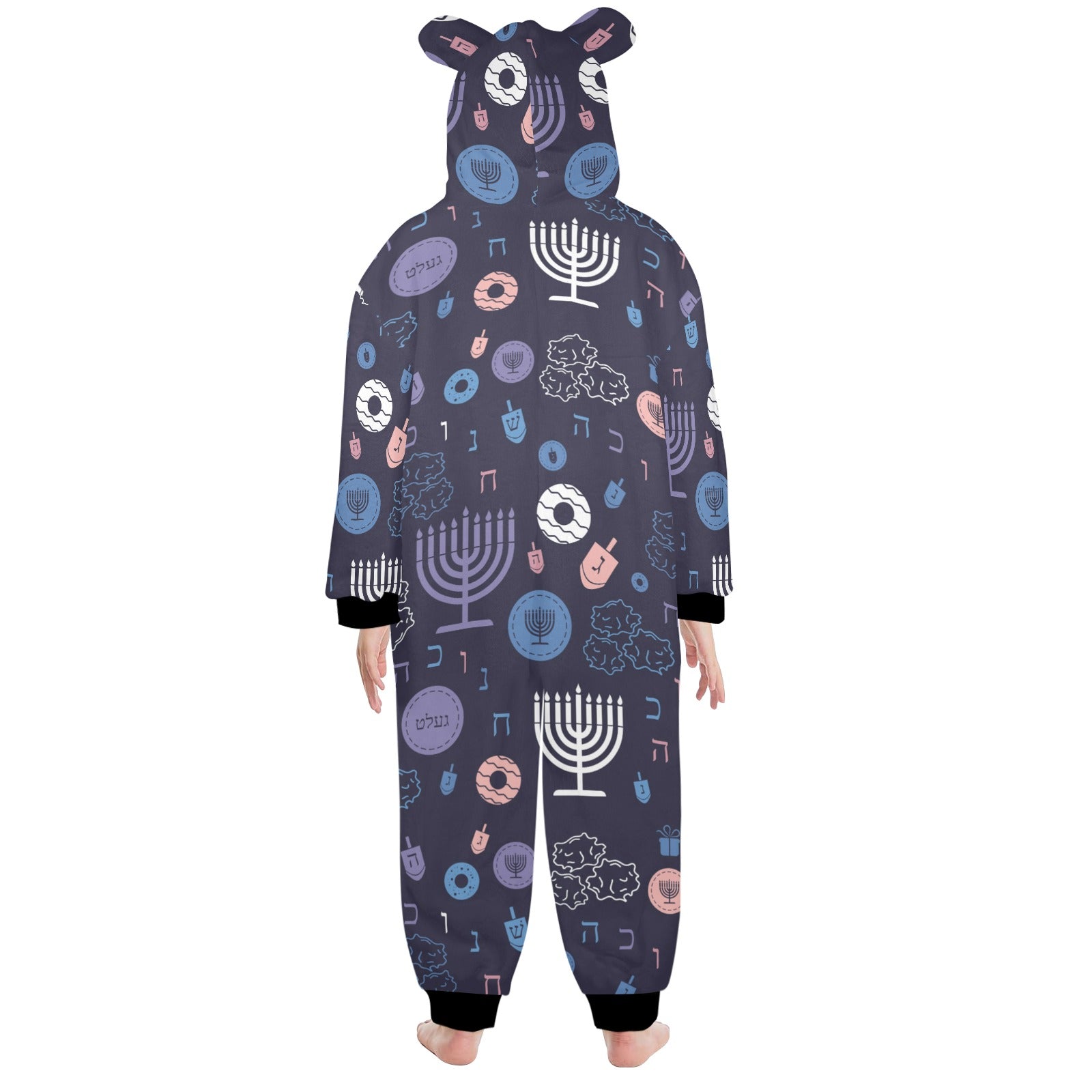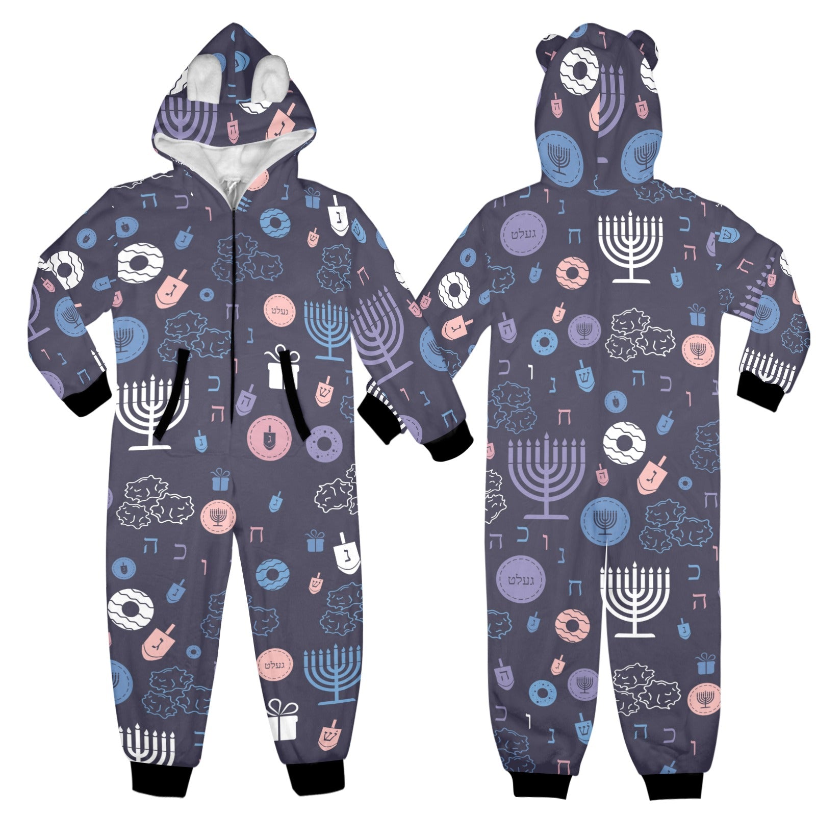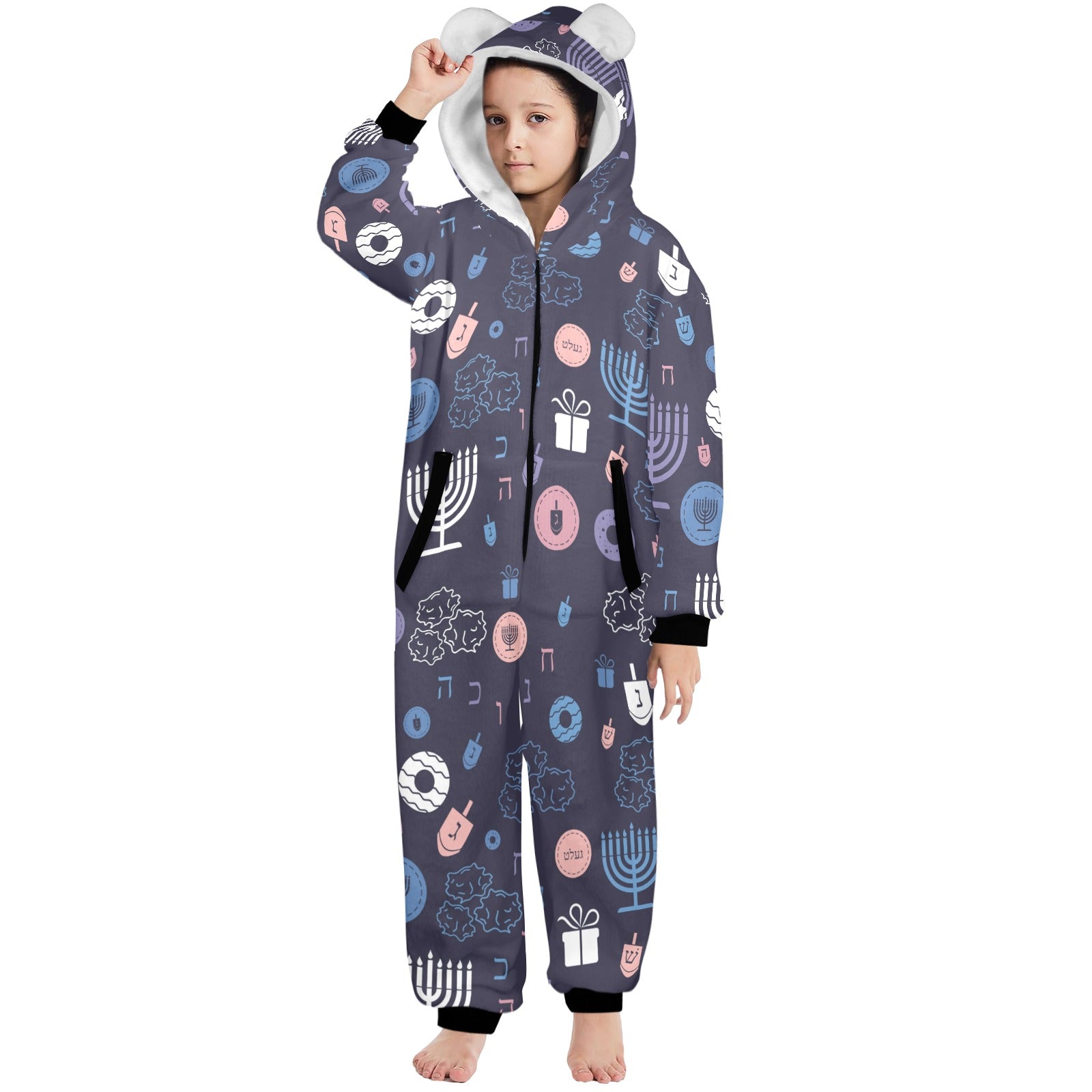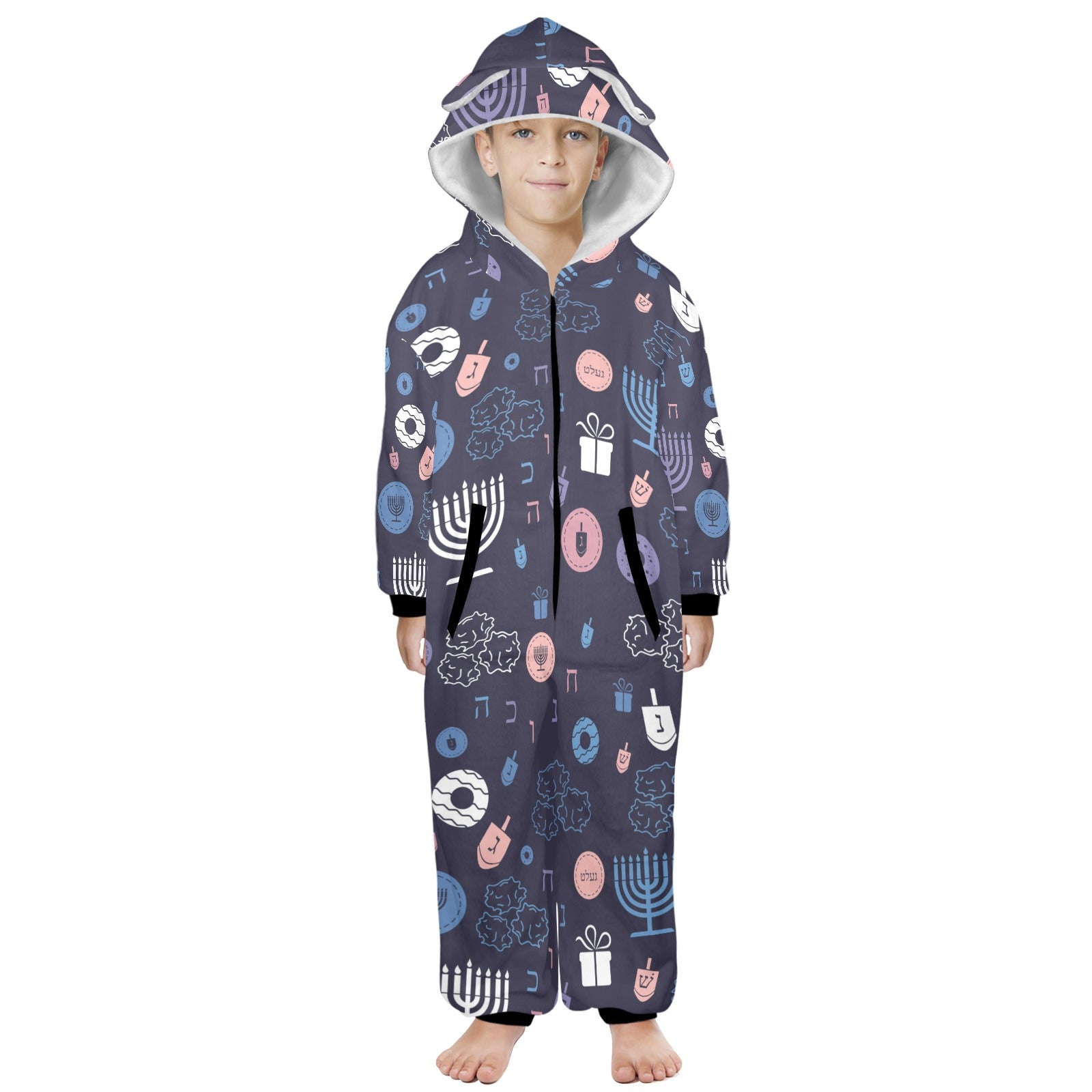Warm Sunset Chanukah 5785 One-Piece Zip Up Hooded Pajamas for Big Kids