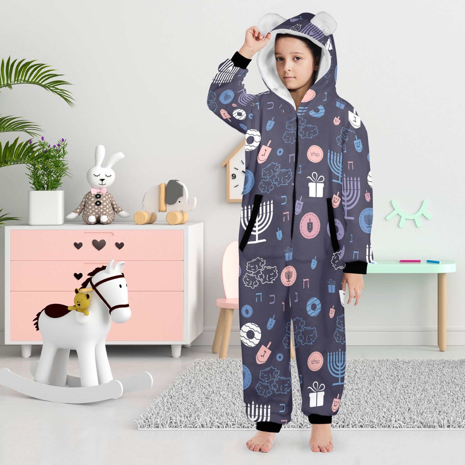 Featuring an adorable ear design on the hood and a convenient one-piece style, these pajamas make for a unique and humorous gift option for children. They are also a standout choice for any season.