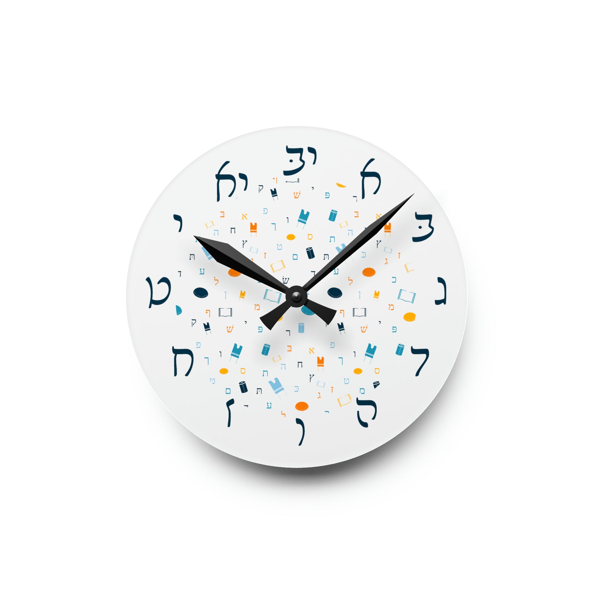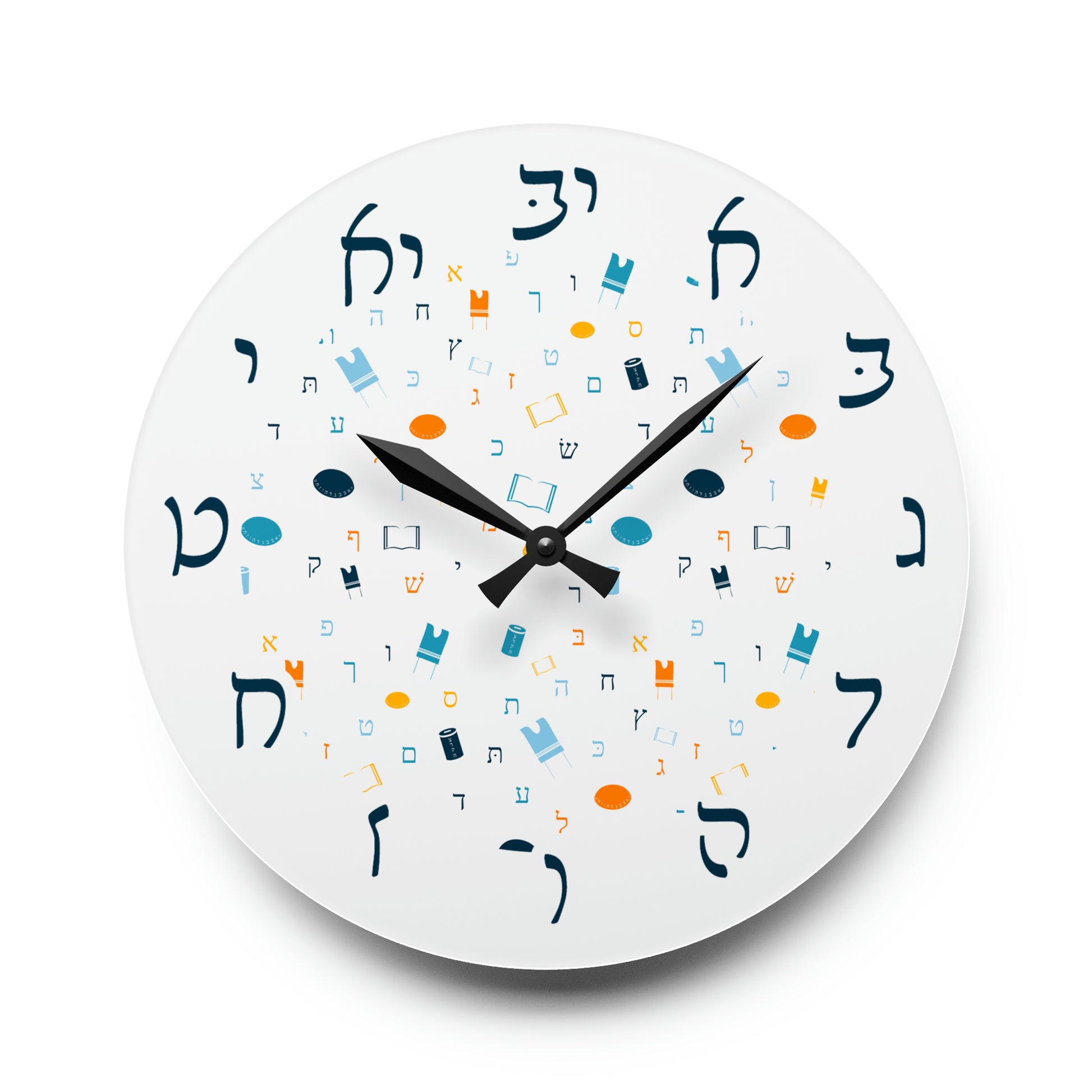 With Rashi Numbers - Mitzvah Boy Aleph Beis Acrylic Wall Clock